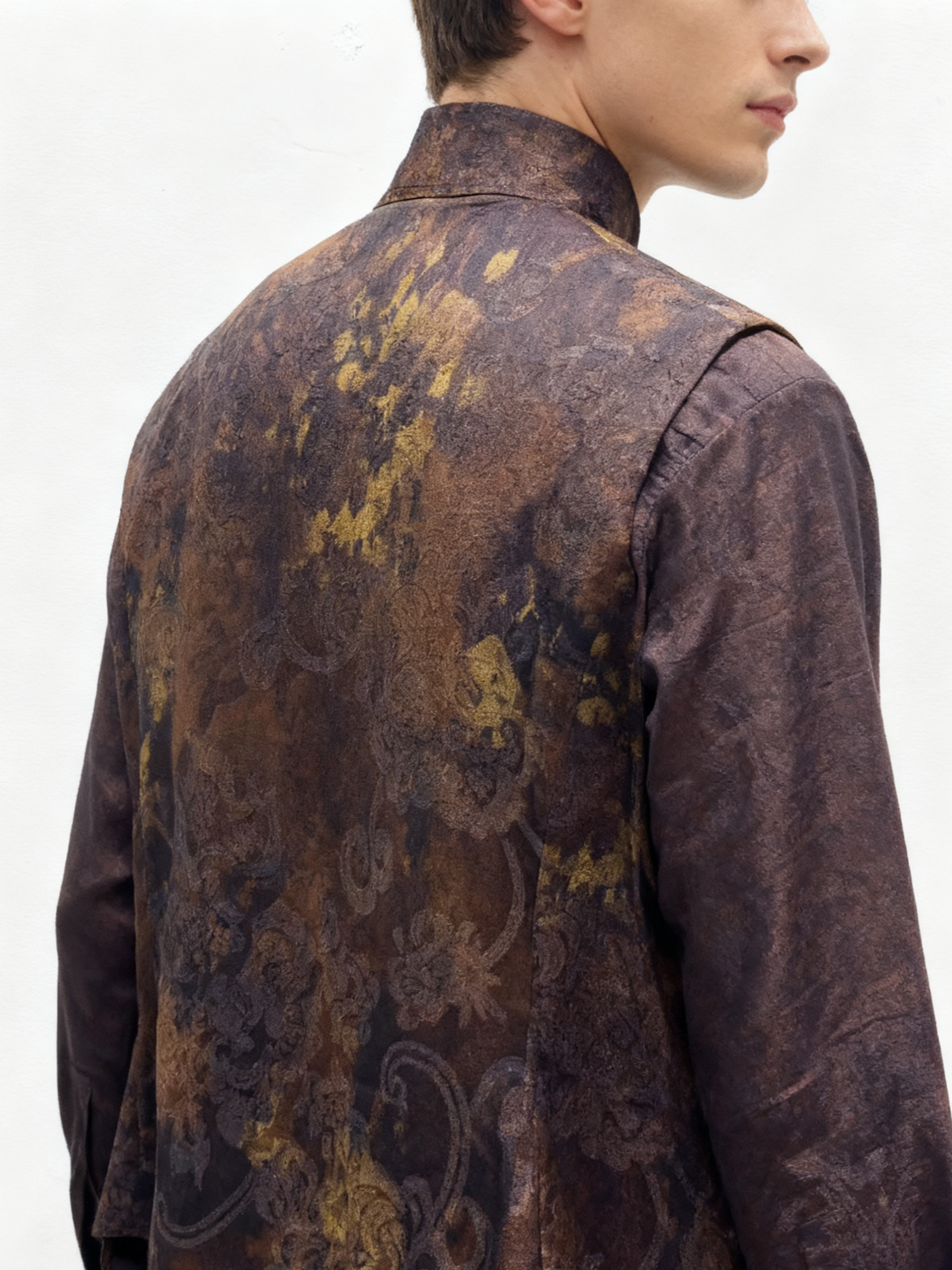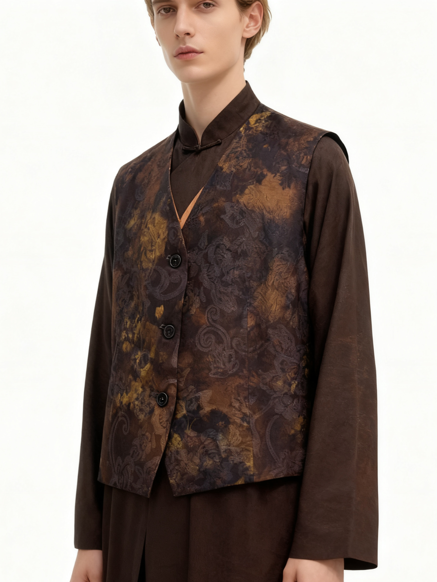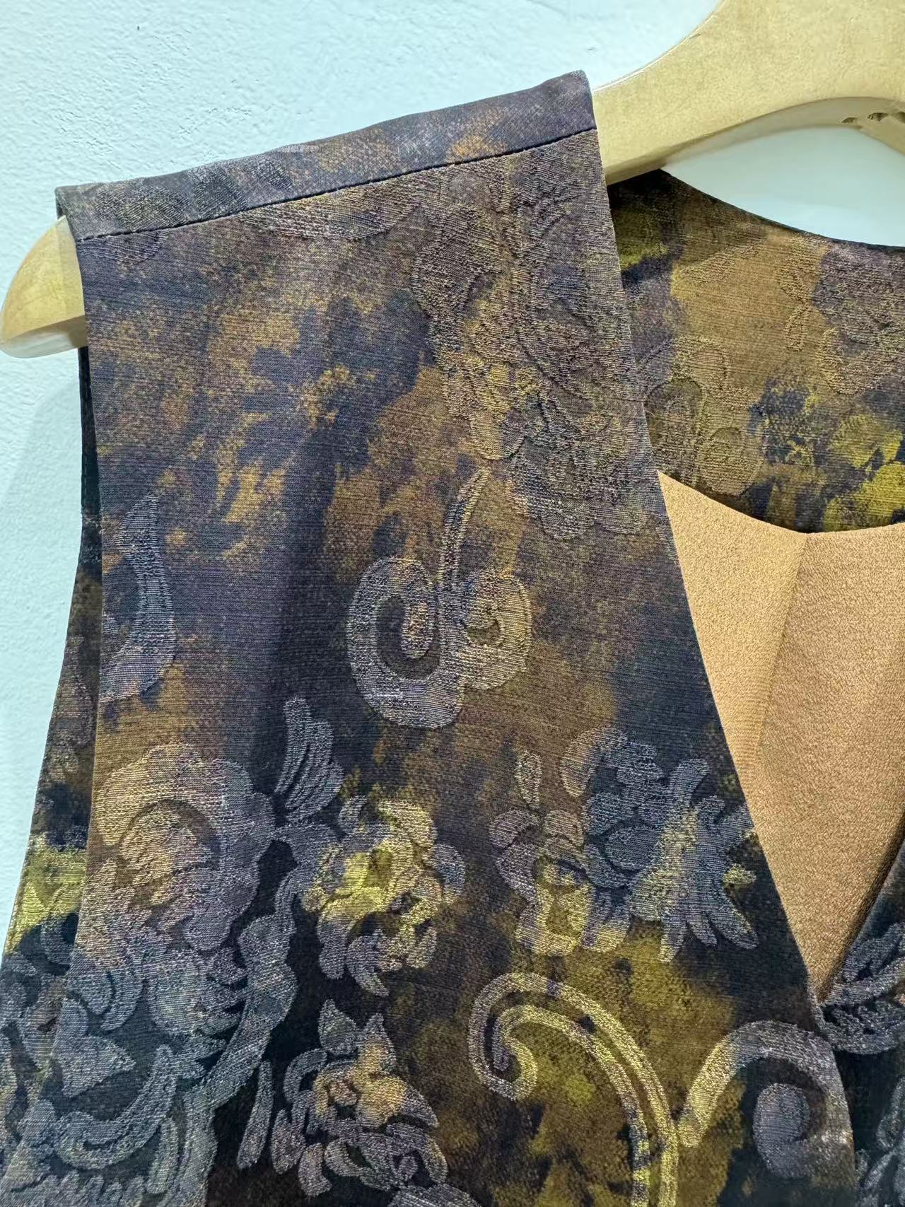 This vest features a vintage print, brown base color, and exquisite patterns, showcasing a strong retro style. Classic V-neck design, simple yet able to enhance the neckline line. The buttons on and off make it easy to put on and take off, while also adding a sense of detail.